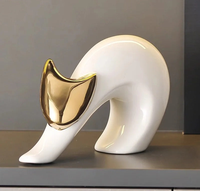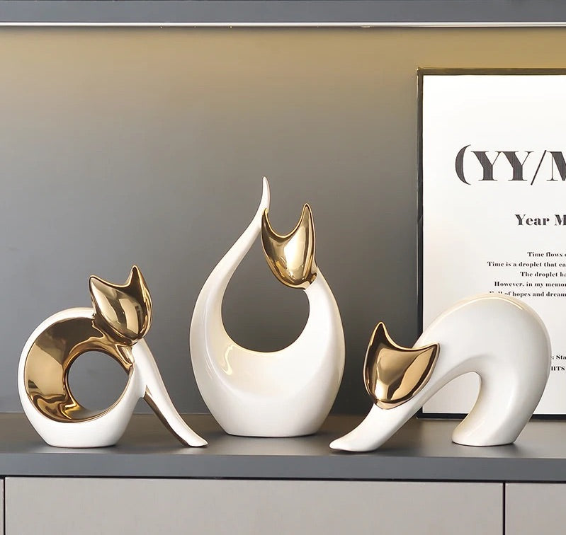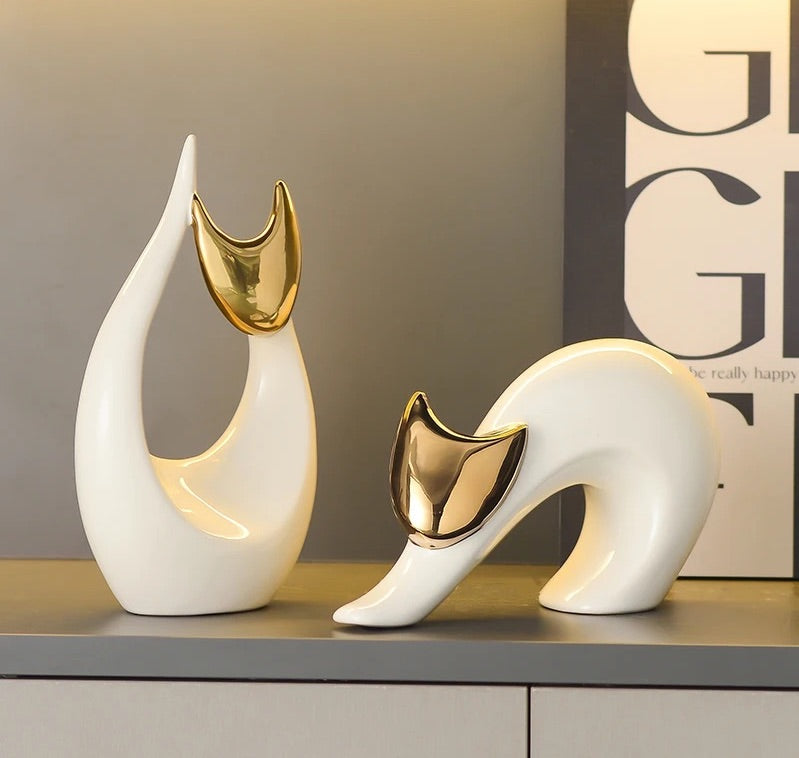 "Feline Elegance Redefined: Minimalist Gold & Silver Cat Sculptures for the Discerning Cat Lover"
