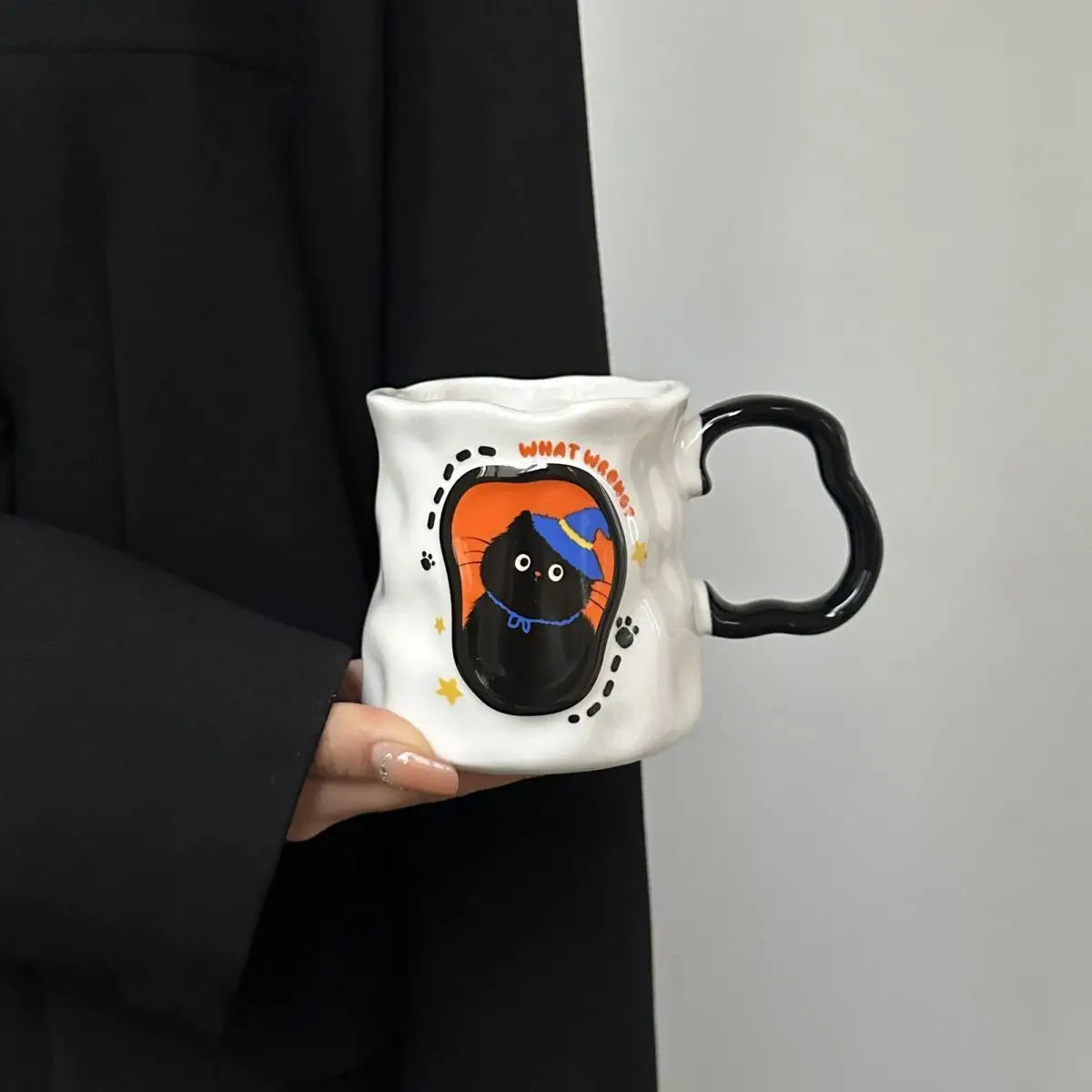 Is your morning coffee missing a dash of spellbinding charm? This Mystical Cat Wizard Mug conjures up whimsy with its adorably confused feline sorcerer, crooked storybook shape, and curling tail handle. More than just a mug - it's a pocket-sized portal to a purr-fection magical realm.